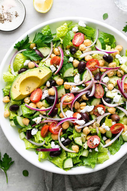 پنیر فتا و سس تهیه شده را به ظرف اضافه میکنیم و در صورت میل با آواکادو و جعفری خرد شده تزیین میکنیم.
